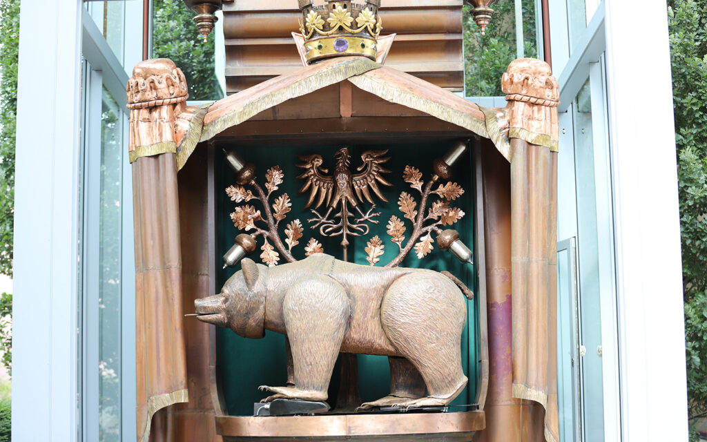 Die Wappenuhr in Bernau gehört zu den bedeutendsten Arbeiten der Kunstschmiede Schwuchow. Über viele Jahre hinweg entstand dieses Werk in enger Verbindung zur Stadt und wurde 2022 feierlich eingeweiht.